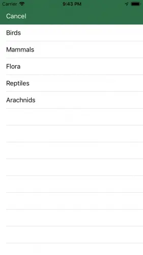 当用户添加新样本时,他们可以输入样本名称并选择一个类别。 打开CategoriesTableViewController.swift。 此视图控制器在table view中显示类别列表,以便用户可以选择一个。