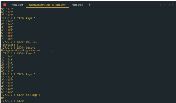127.0.0.1:6379> keys * 1) "lcb" 2) "lcj" 3) "lcd" 4) "lch" 5) "lci" 6) "lcc" 7) "lcf" 8) "lce" 9) "lca"10) "lcg"127.0.0.1:6379>