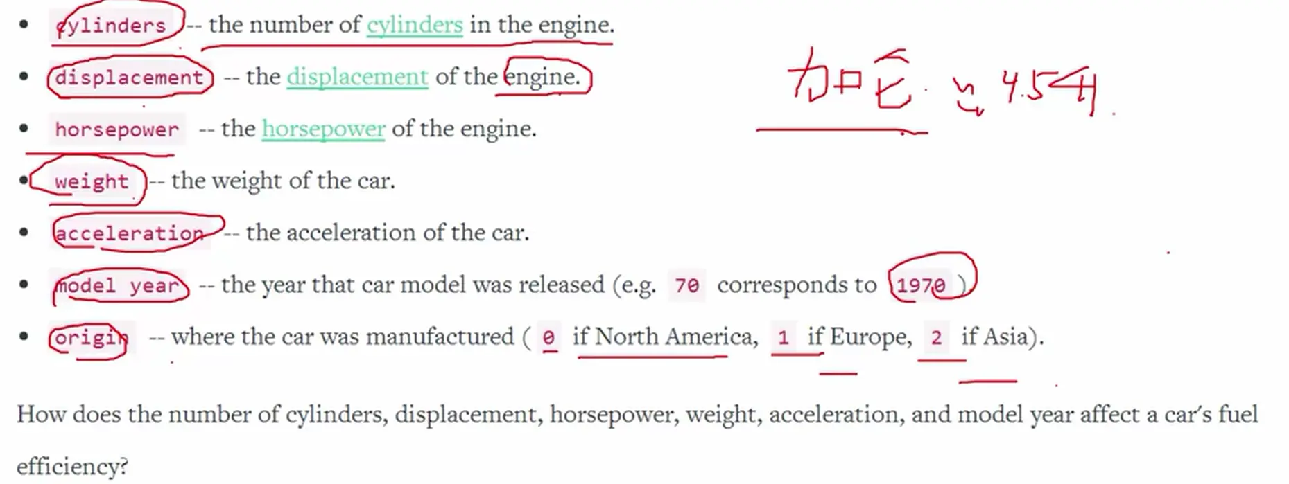 1 线性回归问题实践(车的能耗预测)