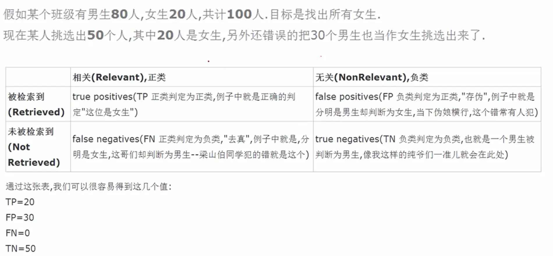 模型评估案例分析(先找目标,比如女生,它就是正例P)