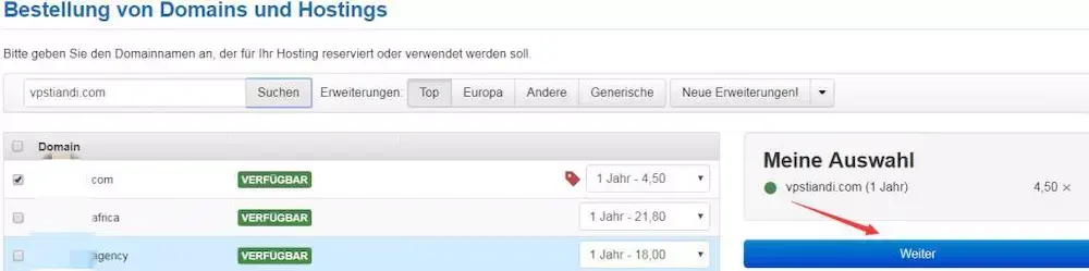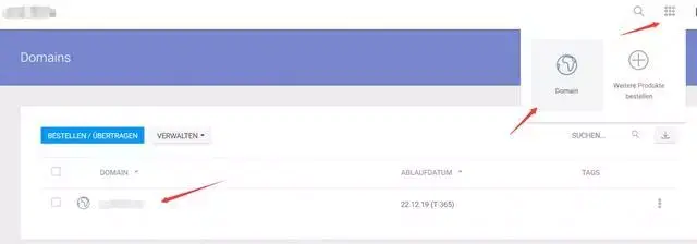 然后搜索域名,可以带后缀,输入后点击右侧的Suchen: