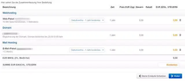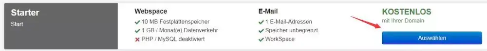 往下拉,选择免费的,可以看到免费的还有空间和email,不过我们都不感兴趣,继续点击蓝色按钮下一步,这是他会推荐个收费服务给我们,不用管,一直下一步: