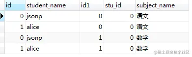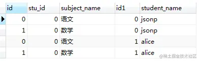 join语句相当于对两张表做了乘法运算,把student表中的每一行记录按照顺序和student_subject表中记录依次匹配。