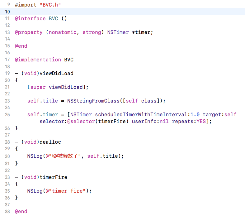 下面我们就看一下解决NSTimer造成循环引用的方法。