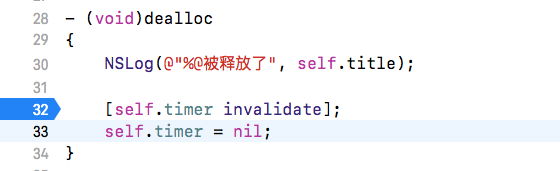 NSLog(@"%@被释放了", self.title);