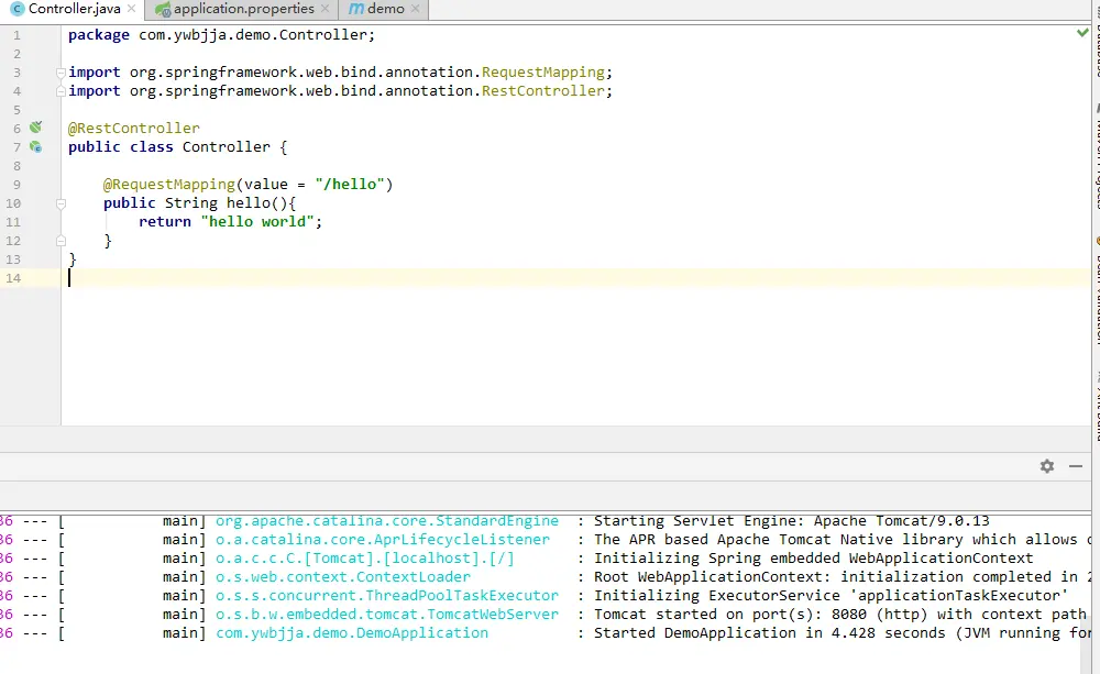 Controller加上@RestController注解,@RestController注解在我们前后端分离开发中非常方便,因为我们目前的最好的是后端返回JSON数据然后给前台来解析,当你使用了之后会发现非常之方便~然后我们用