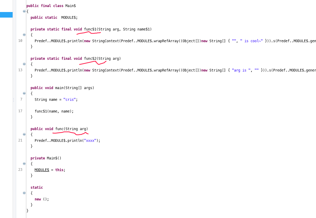 // 隐式类会独立生成一个 .class 文件,还会在当前 Main 类生成一个转换函数