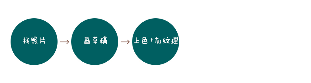 找照片(名画/电影场景/照片——画线稿——重新调整造型,达到自己满意的程度——填充颜色——添加纹理)