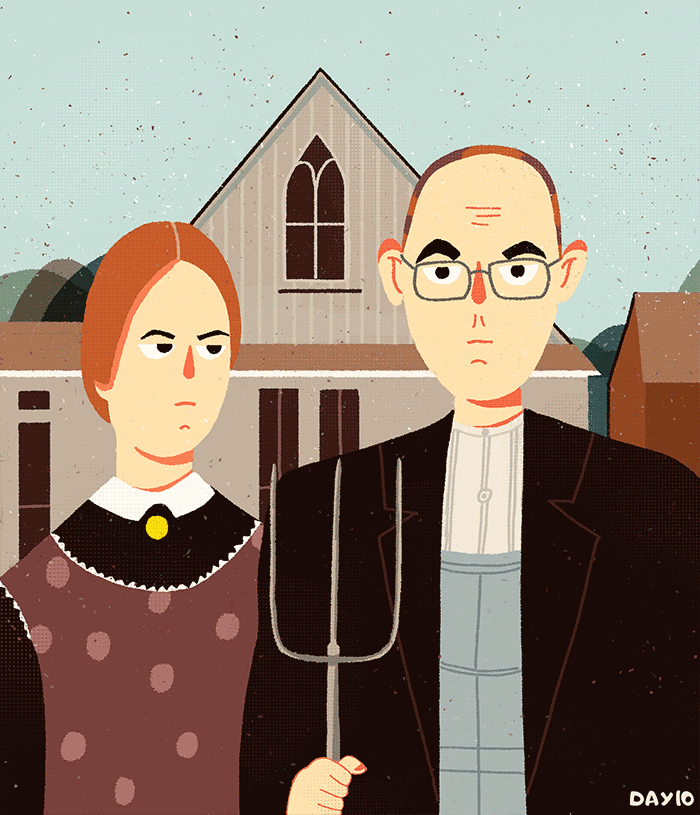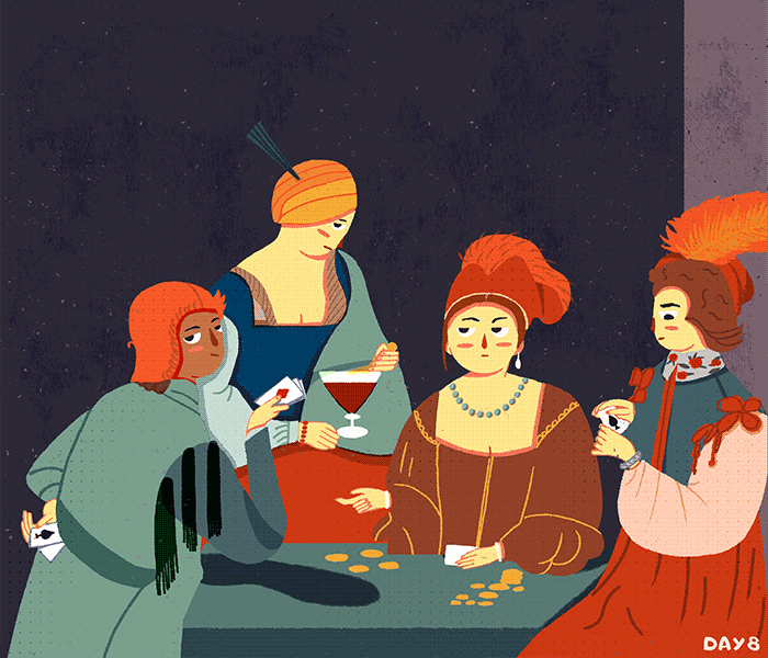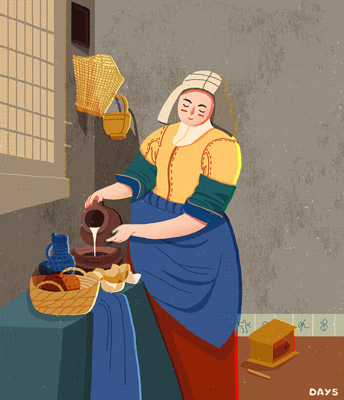 3)填充颜色:有些名画的颜色用到插画中并没有那么好看,会导致颜色太艳丽或太暗,因此需要再调整。