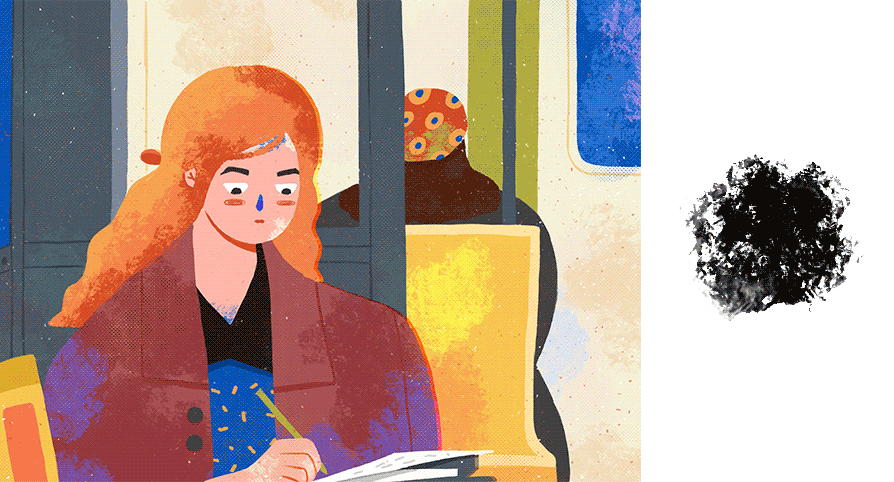 我运用的纹理方法:在我们的画面中中网点纹理——碎点底部纹理