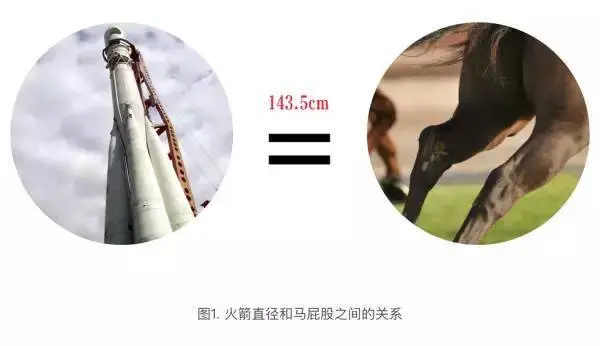 现代的火箭直径有大多是一个固定值,这是由什么决定的?是铁路隧道的宽度和铁轨的间距,因为火箭送往发射场往往要通过火车运送。铁轨的间距是由什么决定的?是沿袭了欧洲马车道的车辙间距。为什么欧洲的马车道的车辙印都是一样的?因为不一样的车轮,会很快会被磨损。车辙间距是如何决定的?是由古罗马时期两匹马马屁股的距离决定的。所以,现代的火箭直径,其实是由两千多年前两匹马的马屁股决定的。