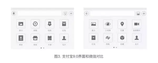 微信的力量同样非常强大,不仅仅是它所覆盖的用户,所聚集的流量,更是它对用户行为习惯的塑造。支付宝在加入即时通讯同能时,界面照搬了微信,单纯从产品设计的角度来说,是一个正确决定。从用户惯性和路径依赖的角度,的确应该跟进,最大程度的减少用户的认知成本。