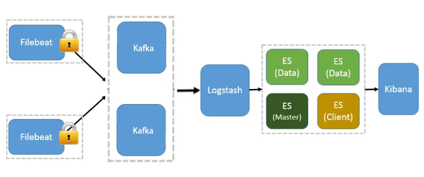 如果日志量巨大,可能还会引入Kafka用以均衡网络传输,从而降低了网络闭塞,尤其是丢失数据的可能性;另一方面,这样可以系统解耦,具有更好的灵活性和扩展性。