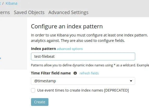 a. Index pattern 输入:test-filebeat ;