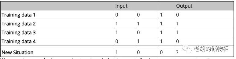 这个神经网络开始于自己给自己分配了一些随机的权重,此后,它使用训练数据训练自己。