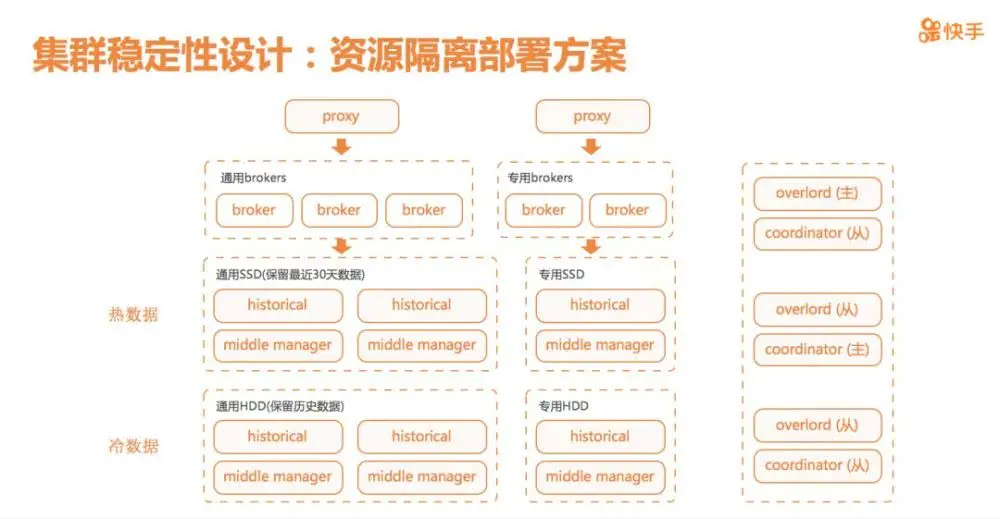 除了冷热数据分离的考虑外,因为有些对查询稳定性要求更高,快手通过 Tier 配置也对特殊业务也做了隔离,特殊的业务数据源索引数据存储在专用的 Historical 机器上。这样在一些大查询可能会导致 historical 内存 GC 或者是系统 IO 支持 Load 较高的场景下,其查询性能仍然不受影响。