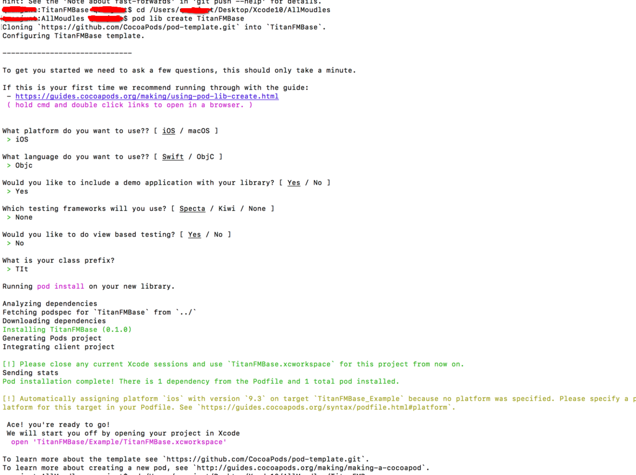 cd ~/Desktop/ZWWaterCollectionView/WaterLayoutpod spec create WaterLayout - 最后打开WaterLayout文件夹中的WaterLayout.podspec, 修改对应的配置信息 可参考:发布开源框架到CocoaPods入坑指南 | TitanKing 本地私有库的写法: