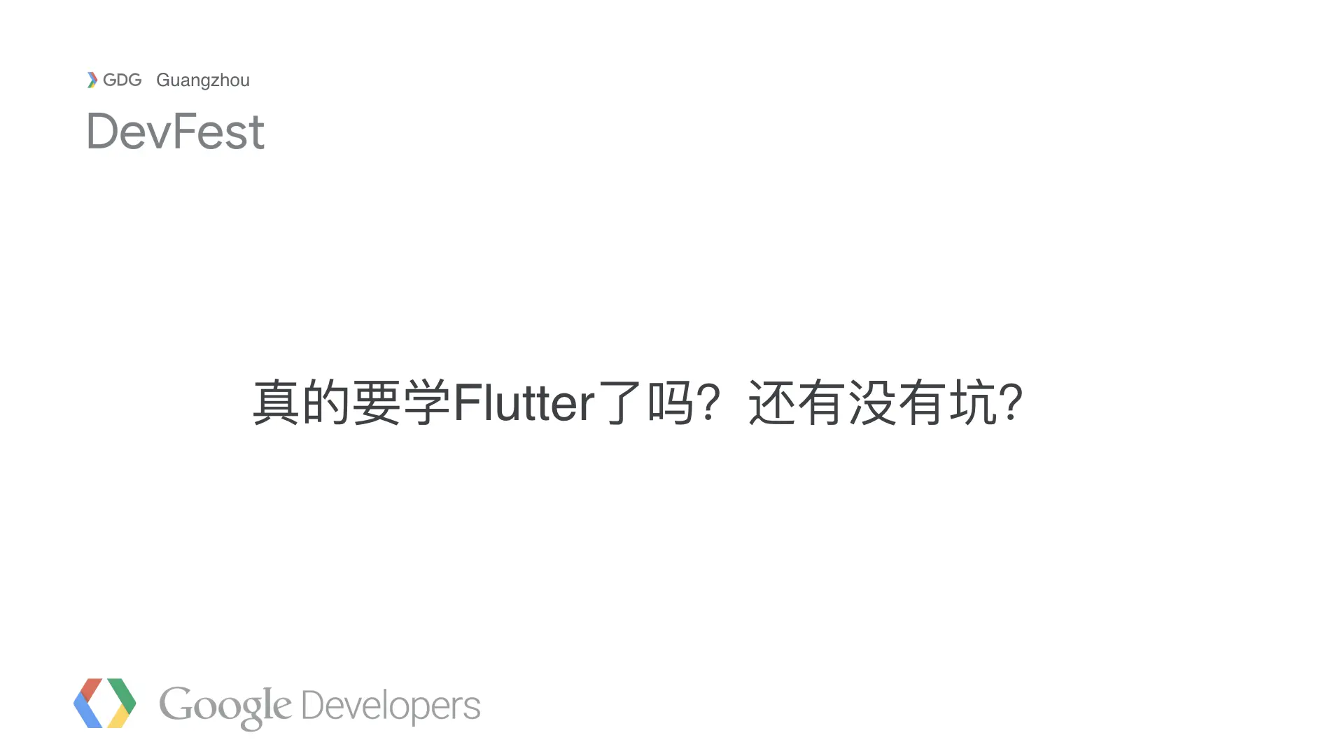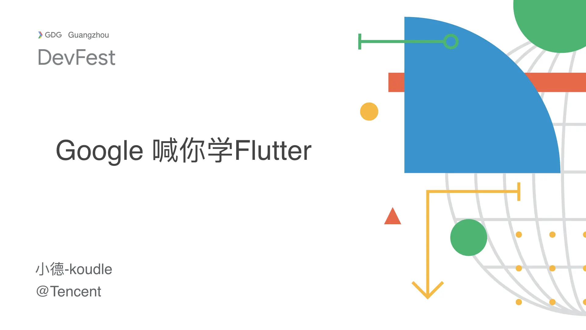 我作为嘉宾参加了Google DevFest 2018 深圳/广州 两场Flutter的分享演讲,首先特别感谢GDG(Google Developer Groups)能够邀请我作为嘉宾参与分享,很希望Flutter能够被原来越多的人知道,也有越来越多的人能够使用Flutter,而且也希望大家以后可以多多参与GDG的活动,因为在我看来,GDG应该是国内做的最好的开发者社区,也是最好的开源社区!
