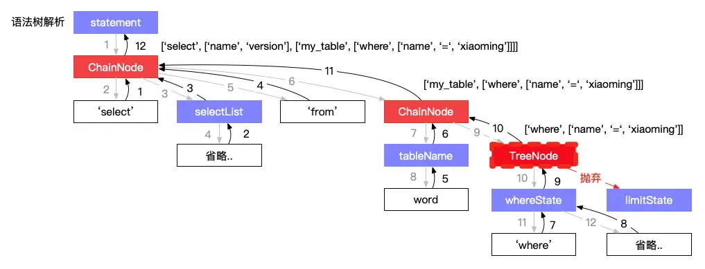 这样就具备了最基本的语法分析功能,如需更详细阅读,可以移步 精读《手写 SQL 编译器 - 语法分析》。