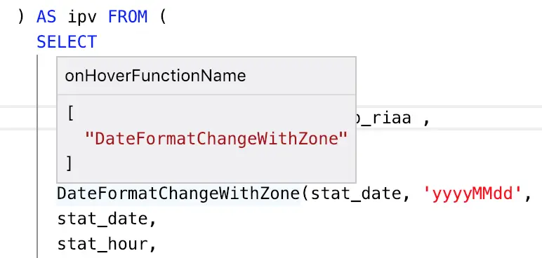 再比如实现了 onHoverFunctionName,可以自定义鼠标 hover 在函数时的提示信息: