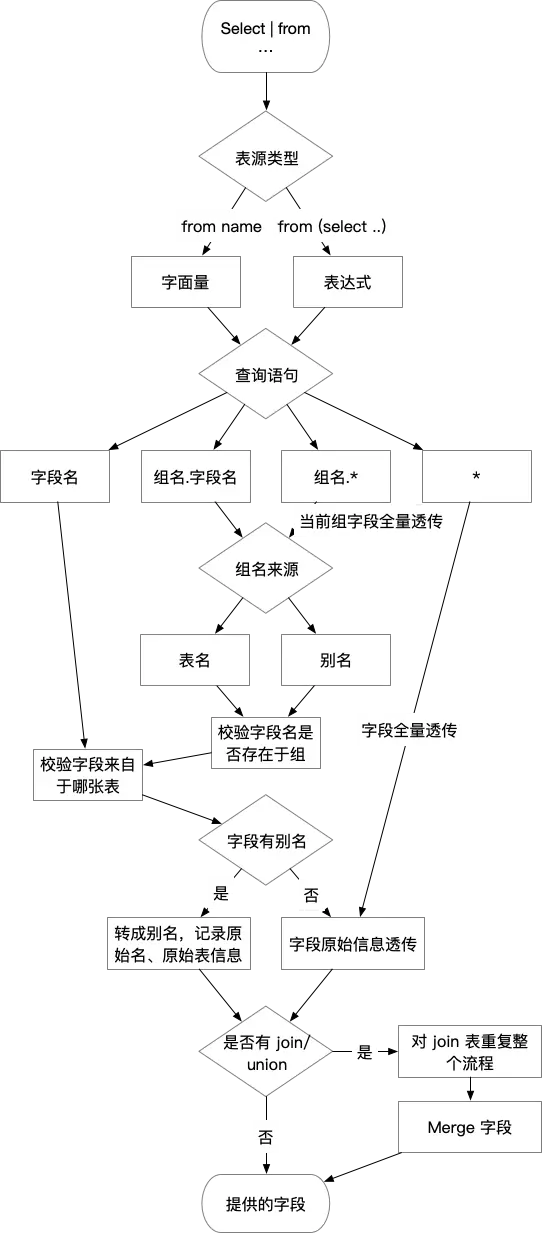 from之后跟的语法,不但要考虑嵌套场景,别名,分组,方言,还要追溯每个字段来源于哪张表(针对 join 或 union 的情况)。