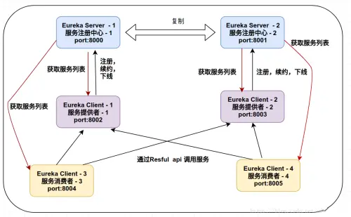 服务注册与服务发现:服务注册是微服务启动时,件自己的信息注册到服务发现组件上的过程。服务发现是指查询可用微服务列表及其网络地址的机制。