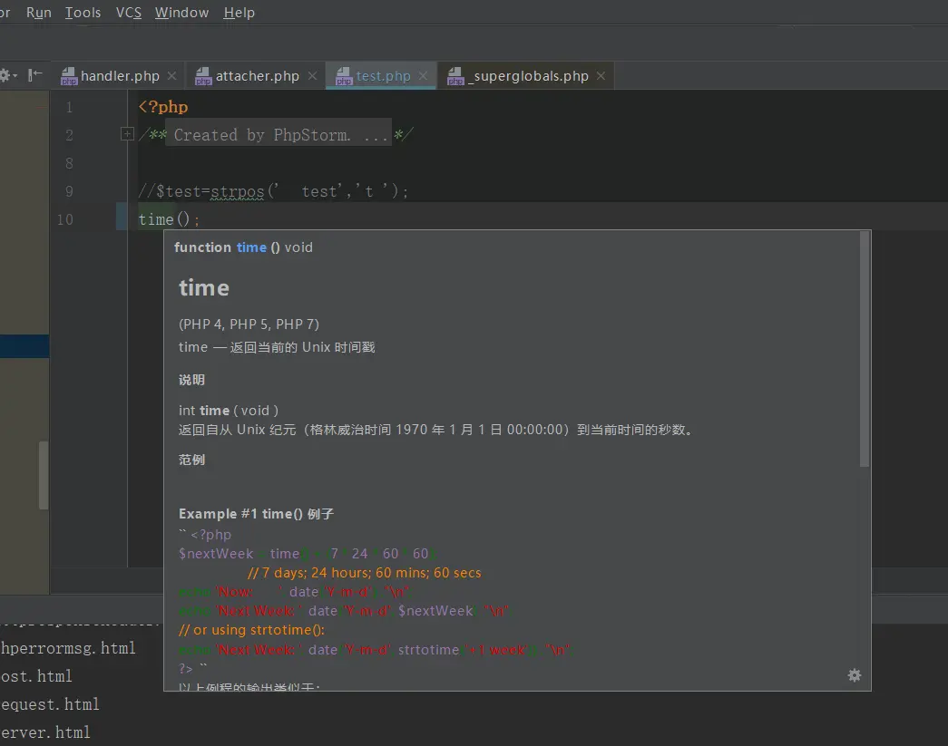 设置文档目录 File -> Settings -> Languages&Framworks -> PHP -> PHP Runtime -> Default stubs path -> 选择文档目录