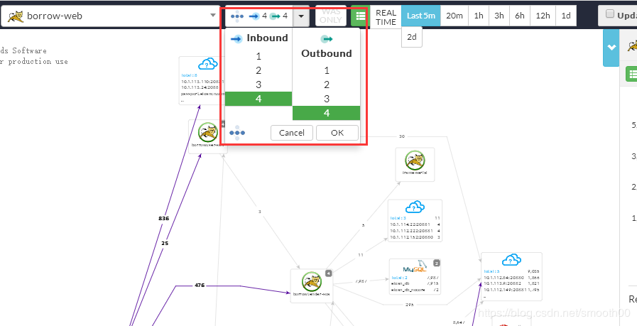 选择更多时间范围(默认最新5分钟)