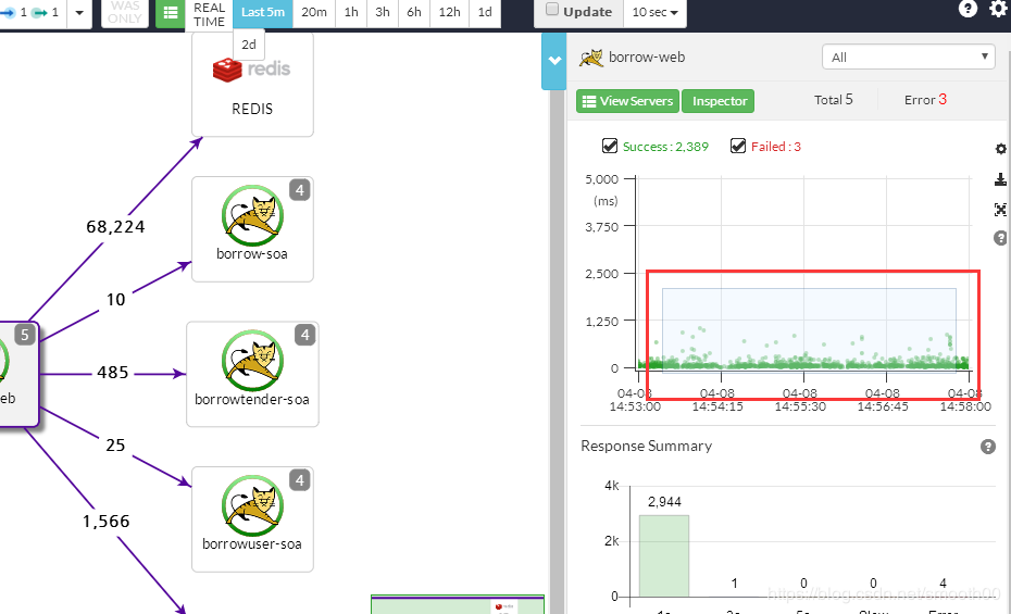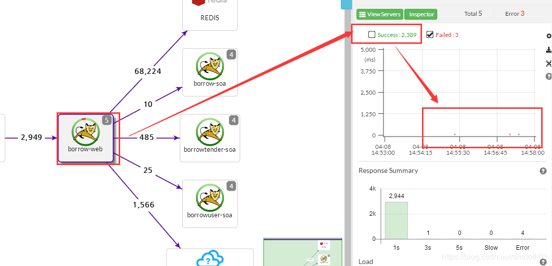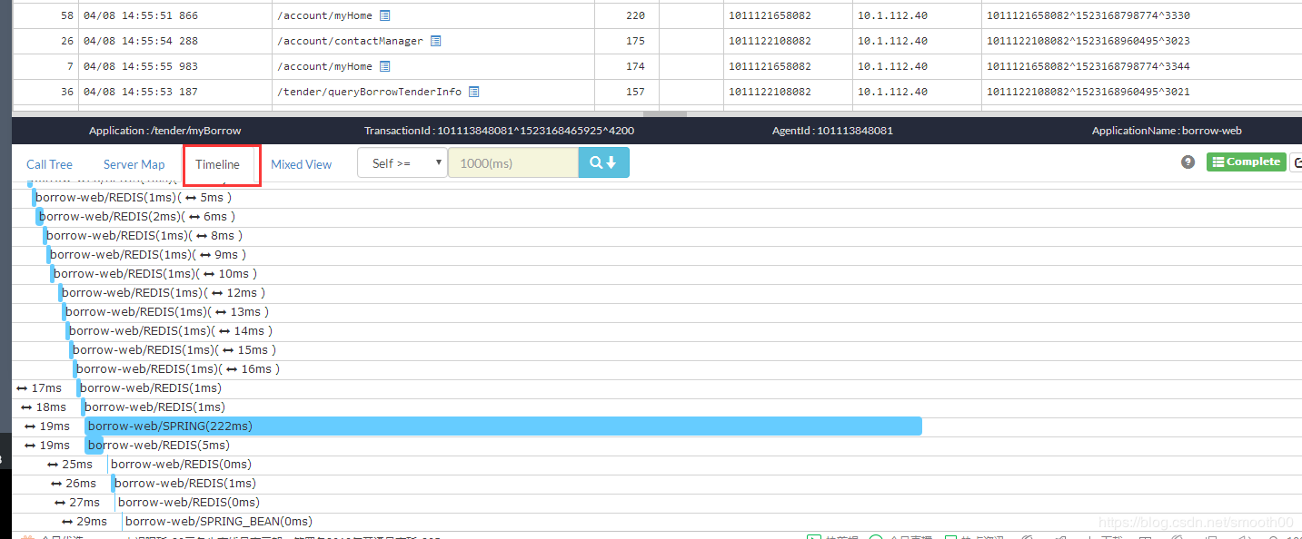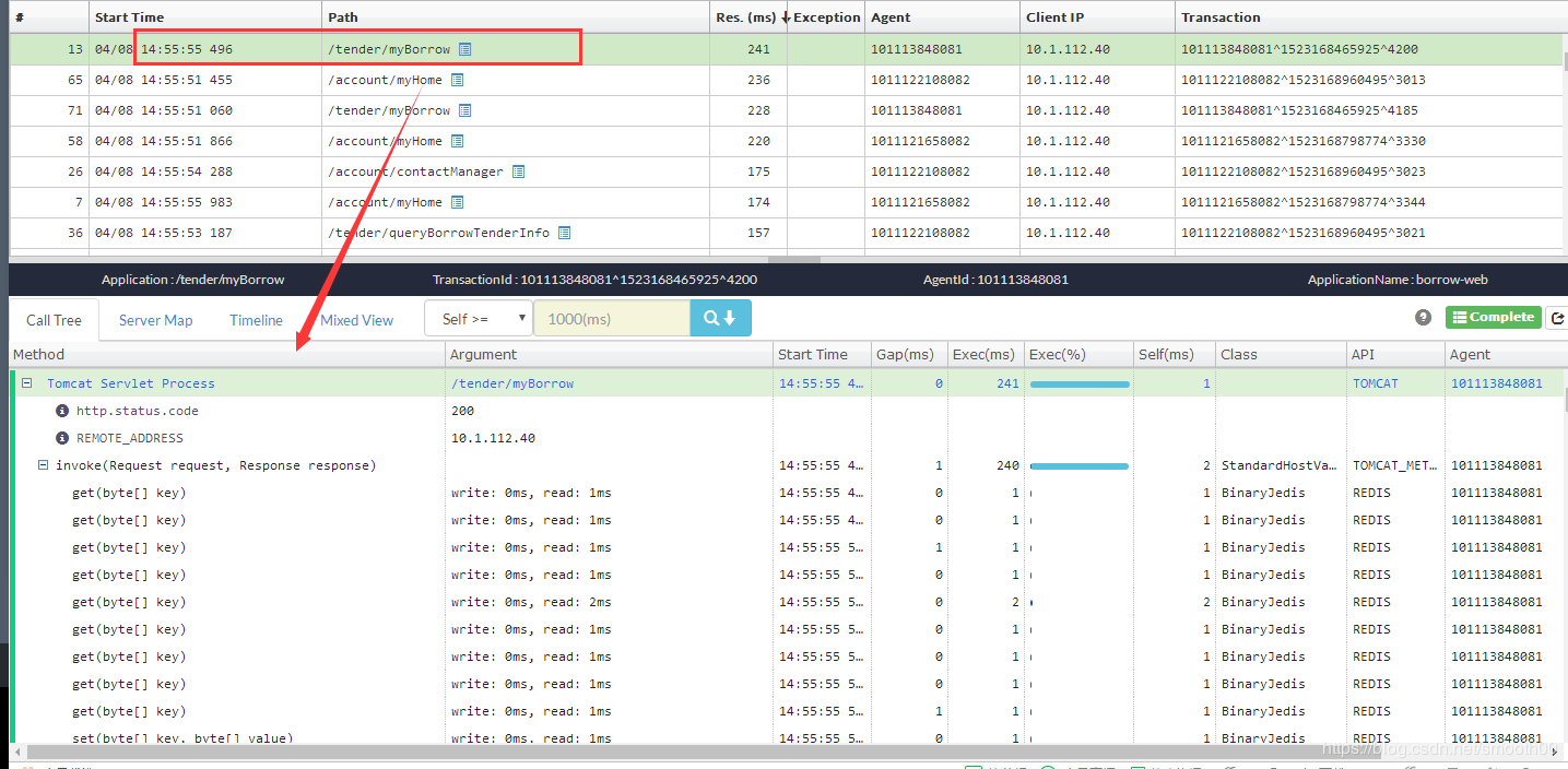选中某一调用,展示详细调用链及耗时