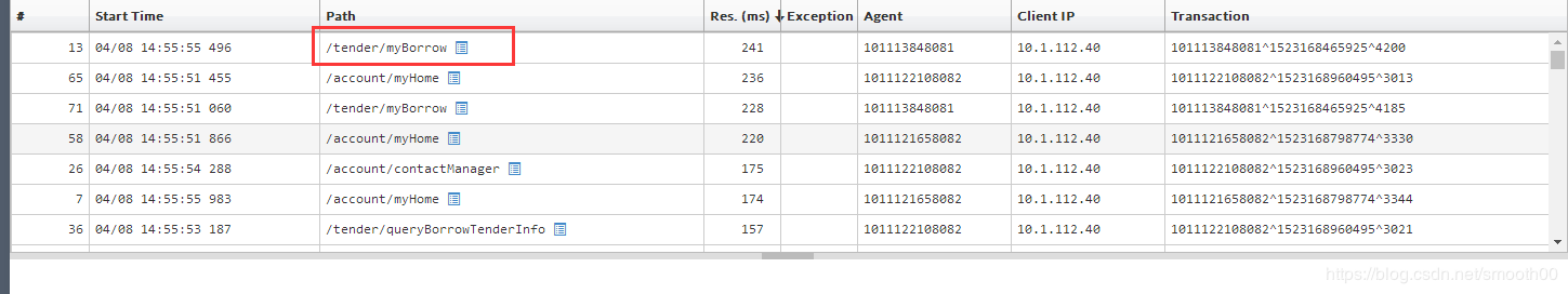 默认按耗时排序