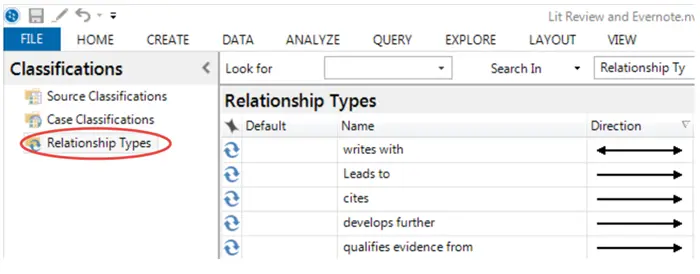 您可以使用关系节点来编码您的文章之间的关系。当你打开一篇文章后,您可以用快速编码工具栏编写左端文章关系情况、中间的关系类型以及特指的文章及案例。如果尚未创建案例或关系,只需在指定框中键入新项目的名称即可,如下图所示: