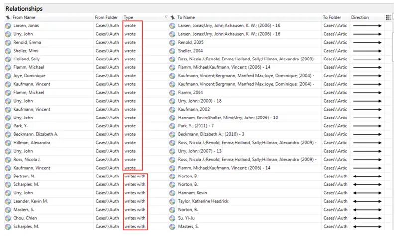 您可以通过单击“Explore”选项卡并选择文章的案例文件夹,在Network Sociogram中查看和探索您在文章中创建的关系: