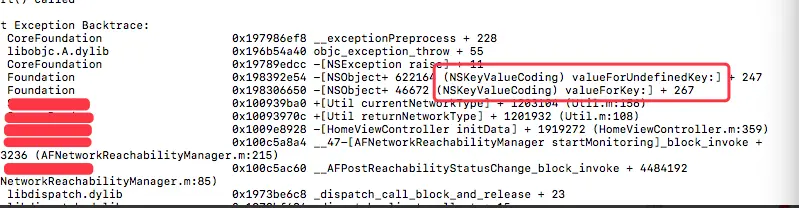 注意:我们用的这种方法提交之后,审核被拒,说是在iOS 12上,崩溃,通过解析苹果返回的崩溃日志,可得知,有的设备key-value键值对是不存在的,截图如下所示: