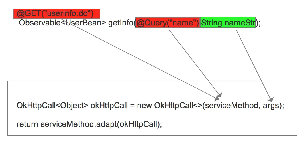 - 告诉它一些基本信息,比如url地址,网络请求方式(get、post、...等),请求参数值。然后拼装成一个标准的网络Request请求的格式发出去。所以这里有二步动作:1.先解析我们写的参数,2.再解析完后拼装成标准的网络Request请求格式