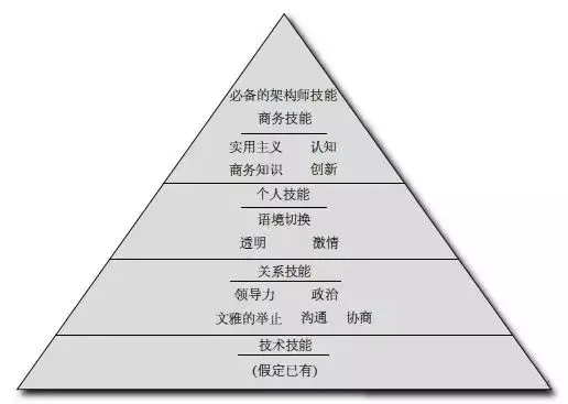 下面的图来自《软件架构师的12项修炼》一书,很好的说明了架构师应该具备的软技能: