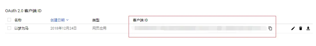 1、获取客户端ID(https://console.developers.google.com/apis/credentials),如下图: