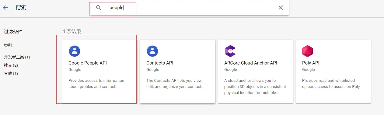 ps:这里面要注意,使用Google API的之前要在谷歌后台启用people API库,如图: