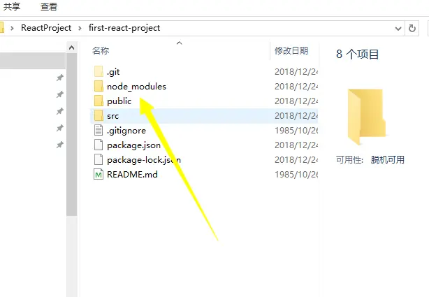 如果有下面这个包的话标明已经安装好React了,可以直接跳过安装进入创建环节,如果没有可以可以按照以下步骤安装