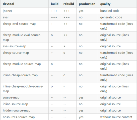1. 源代码中的列信息是没有任何作用,因此我们打包后的文件不希望包含列相关信息,只有行信息能建立打包前后的依赖关系。因此不管是开发环境或生产环境,我们都希望添加cheap的基本类型来忽略打包前后的列信息。