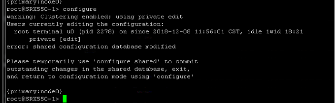 error: private edits in use. Try 'configure private' or 'configure exclusive'. - 此时应执行如下操作