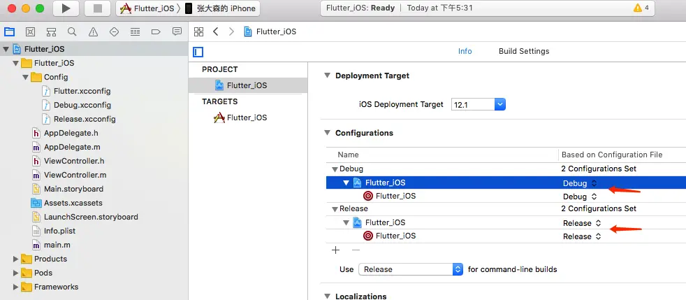 Flutter.xcconfig、Debug.xcconfig、Release.xcconfig三个配置文件。 - 其中