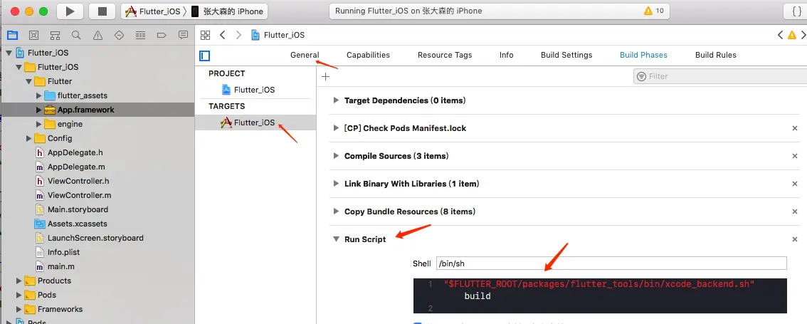 - 默认自己的Xcode Run Script编译好的framework并不在项目中,而在你创建flutter module文件夹下。