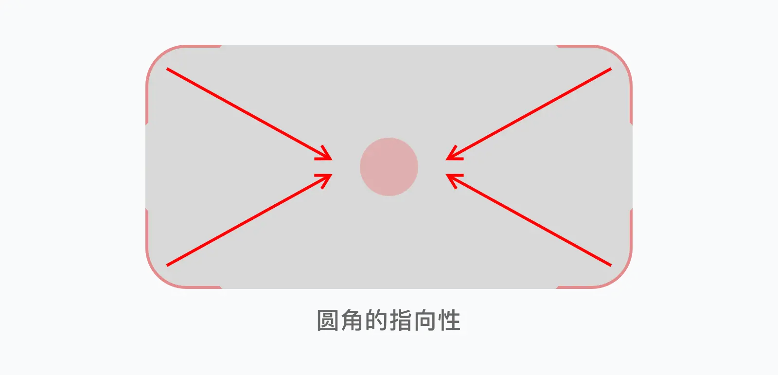 在卡片上的应用中,由于边缘圆角向内指向矩形的中心更加明显,所以更加凸显卡片内的内容。如图例: