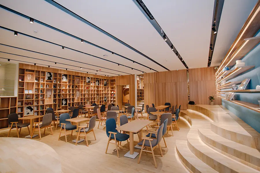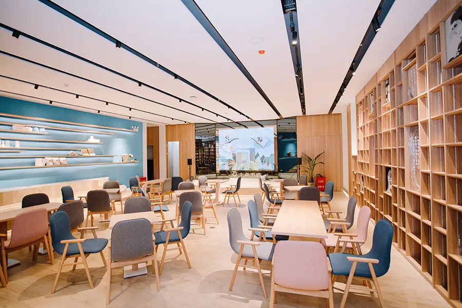 为了空间的高效利用,“课堂区域”平时就是一个咖啡厅,而在特定时间,会变为“十点读书”的知识学习与分享空间,将“十点读书”的线上课程带到线下运作。“如何让大家在这个空间学习,并坐得住,这也是对我们专业上的挑战。”