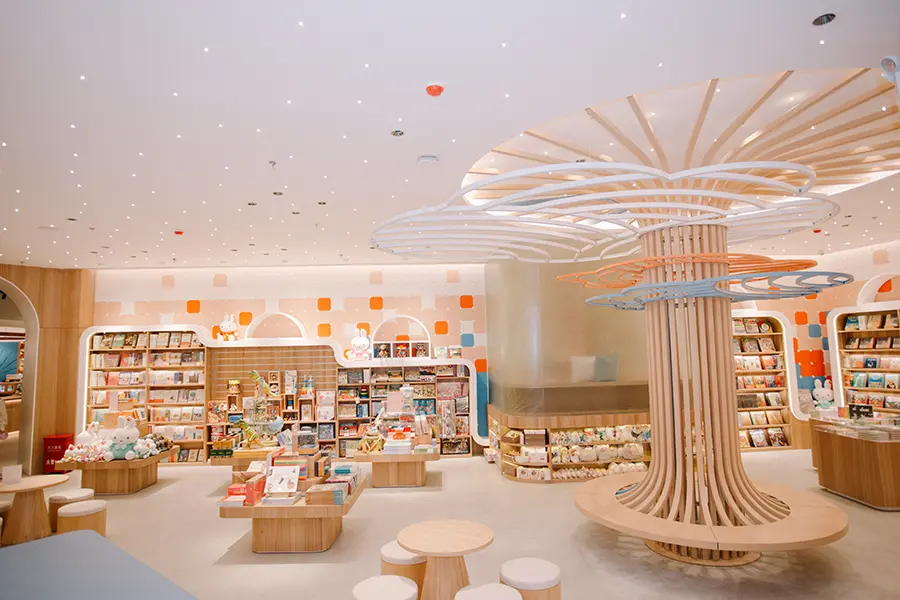 在书店入口处,设置有巨大的蒲公英形状的电话亭。读者可以在此拿起电话,用耳朵“阅读”,这让阅读变得“更有意思”。高少康说,“这也是重现我们小时候的记忆,文化根源是我们情感的一部分,希望能通过创意和设计把一些温暖带进来。”
