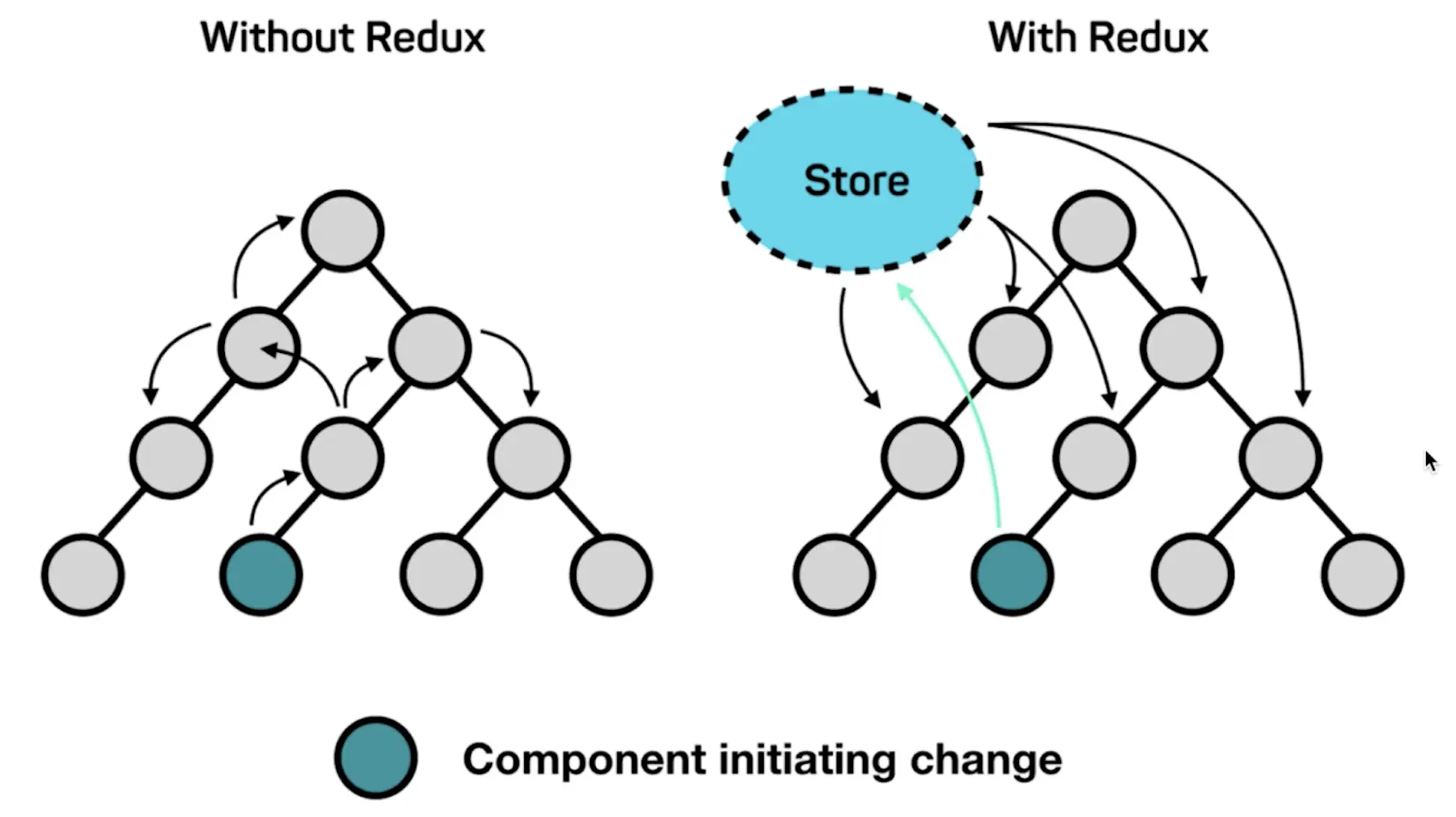 我想学习 redux 的同学多少知道它的作用,官方定义 redux 是一个面向 JavaScript 应用的可预测状态容器。如果用过 vuex 的,就能明白它是干嘛的,它们作用是一样的,主要用来管理共享状态。不同于 vuex 与 vue 的关系,redux 与 react 是解耦的,虽然 redux 通常用在 react 中。至于为啥要用 redux,我觉得一张图更好说明问题: