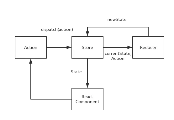 在 react 中使用 redux 时,某组件需要一个数据,那么它就需要触发一个 action,通过 dispatch 给 store,表明自己需要数据啦,action 是行为动作,它告诉 store 需要什么样的数据,它也是 store 数据的唯一来源。store 相当于一个管理员,它自己不直接处理数据,而是把当前的数据和收到的 action 告诉 reducer,让 reducer 来处理数据,并将新数据返还给 store,再由 store 传递给组件,组件拿到的就是目标数据了。