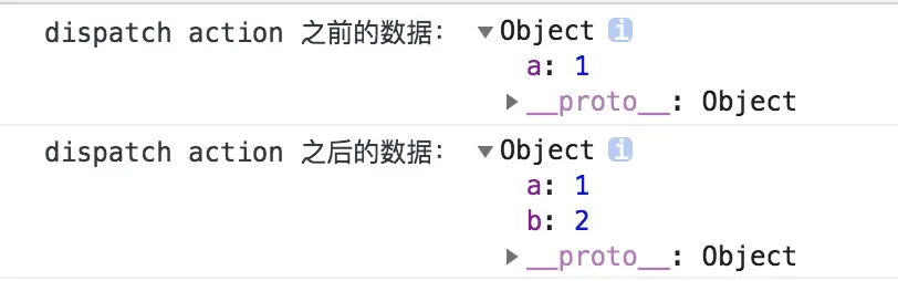 console.log('dispatch action 之后的数据:',store.getState())