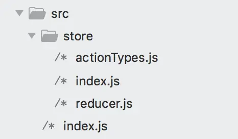 首先,修改项目目录,添加store目录,用来存放 redux 相关文件,而src/index.js文件为组件入口: