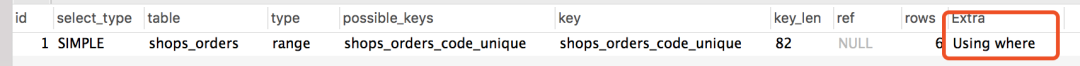 explain select * from `shops_orders` where `code` like '2018010419%';